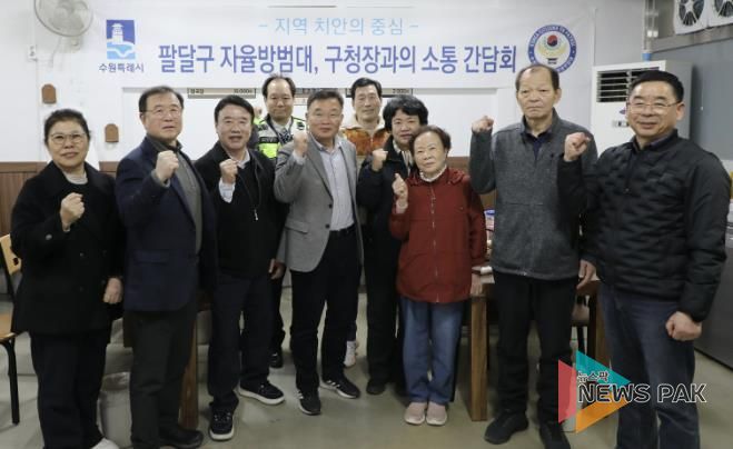 뉴스팍 배상미 기자 | 수원시 팔달구는 지난 17일 지역 사회의 치안 유지와 범죄 예방을 위해 헌신하고 있는 팔달구 10개소 자율방범대 대장들을 초청해 노고를 격려하고 소통하는 만찬 간담회를 개최했다.