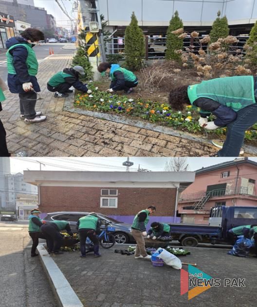 이번 봄꽃 식재는 새봄을 맞아 주민들에게 쾌적하고 아름다운 거리 환경을 제공하고 마을에 활력을 불어넣기 위해 마련됐다. 이날 행사에는 새마을지도자 및 부녀회 회원 30여 명과 행정복지센터 직원들이 참여해 이른 아침부터 구슬땀을 흘렸다.