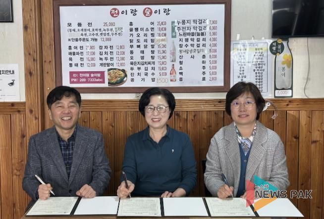 뉴스팍 배상미 기자 | 수원시 장안구 정자3동은 지난 17일, 정자3동 지역사회보장협의체와 함께 지역 음식점 ‘전이랑술이랑’과 취약계층 어르신의 복지 향상 및 지역사회 상호 협력체계 구축을 위한 업무협약(MOU)을 체결했다.