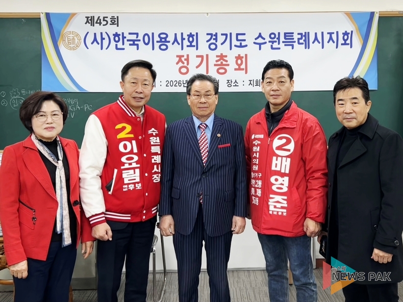 뉴스팍 배상미 기자 | 이요림 수원특례시장 예비후보가 24일 한국이용사회 수원특례시지회 제45회 2026년 정기총회에서 이용업 종사자들과 만났다.
