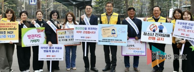 뉴스팍 배상미 기자 | 수원시 영통구는 지난 24일, 영통구청 중심상가 일원에서 민·관·경 합동 청소년 유해환경 계도 및 선도 캠페인을 실시했다.