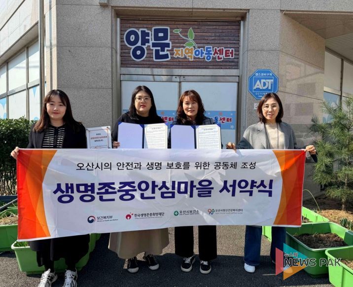 뉴스팍 이소율 기자 | 오산시정신건강복지센터 부설 자살예방센터는 지난 24일 양문지역아동센터(장하나)와 생명존중 문화 확산을 위한 생명존중안심마을 서약을 체결하고, 아동과 학부모 대상 정신건강 지원 협력체계를 구축했다고 밝혔다.