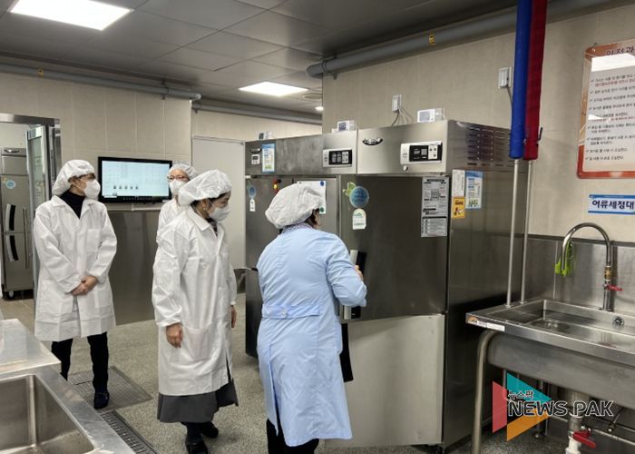이날 점검에서는 식재료 보관실과 조리실, 배식 공간 등 급식시설 전반의 위생 상태와 식재료 보관 온도 관리, 종사자 개인위생 관리 실태를 집중적으로 확인했다. 이를 통해 학교급식 위생관리 중요성을 다시 한번 강조하고 위생 수준을 점검하는 계기가 됐다.