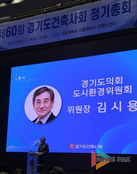 뉴스팍 배상미 기자 | 경기도의회 도시환경위원회 김시용 위원장(국민의힘·김포3)은 25일 경기도건축사회 제60회 정기총회에 참석해 건축 분야 발전을 위해 헌신해 온 관계자들에게 감사와 격려의 뜻을 전했다.