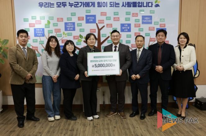 뉴스팍 배상미 기자 | 시흥시 정왕2동에 위치한 본이되는교회는 지난 3월 24일 오전 정왕2동 행정복지센터를 방문해 ‘청소년 꿈 지원 사업’을 위한 장학기금 500만 원을 전달했다.