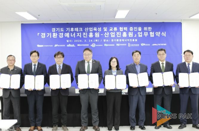 뉴스팍 배상미 기자 | 군포산업진흥원은 24일 김포시 경기환경에너지진흥원에서 진흥원 및 경기도 내 산업진흥원과 함께 기후테크 산업 육성과 기관 간 협력 강화를 위한 업무협약(MOU)을 체결했다고 밝혔다.