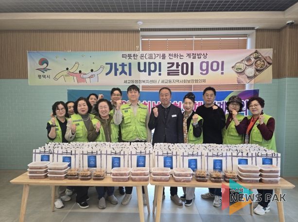 뉴스팍 이소율 기자 | 평택시 세교동 행정복지센터는 지난 26일 ‘사랑의 반찬 나눔 행사’를 열고 관내 취약계층 30세대에 나물 반찬을 전달했다.