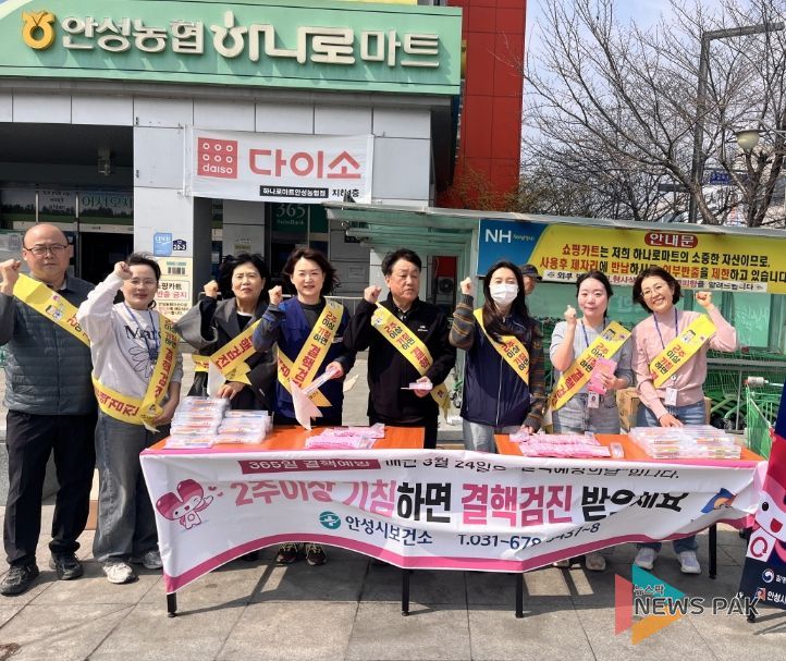 뉴스팍 배상미 기자 | 안성시보건소는 ‘제16회 결핵 예방의 날(3월 24일)’을 맞아 지난 3월 25일 관내 유동 인구가 많은 안성농협 하나로마트 정문 및 안성시장 인근에서 ‘결핵 예방 캠페인’을 실시했다고 밝혔다.