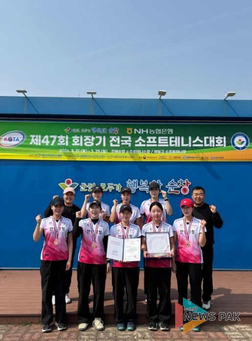 뉴스팍 배상미 기자 | 안성시청 소프트테니스팀이 ‘제47회 회장기 전국소프트테니스대회’에서 금메달 2개를 포함한 전 종목 메달을 획득하며 뛰어난 성과를 거뒀다.