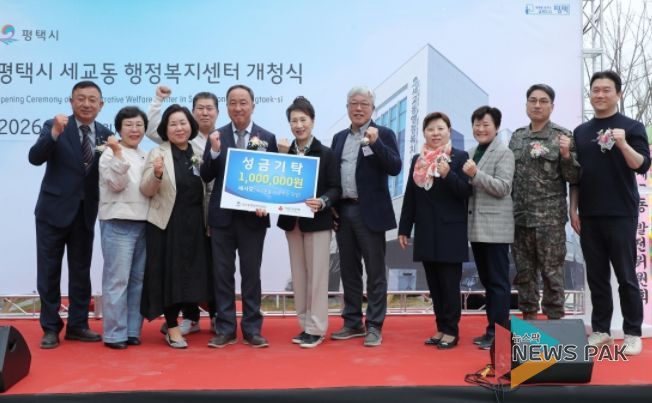 뉴스팍 이소율 기자 | 평택시 세교동 관내 봉사단체 ‘세사모’는 지난 30일, 세교동 행정복지센터 개청식을 맞아 어려운 이웃을 위해 써달라며 성금 100만 원을 기부했다.