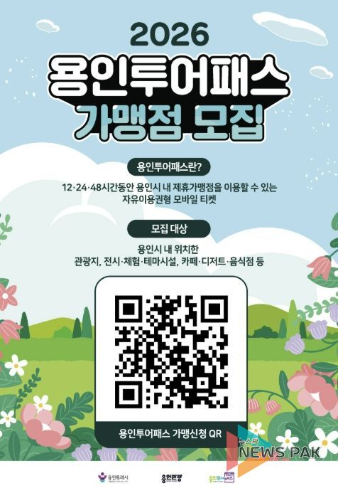 뉴스팍 배상미 기자 | 용인특례시는 지역 관광산업 활성화를 위해 ‘2026 용인투어패스’에 참여할 신규 가맹점을 모집한다고 1일 밝혔다.