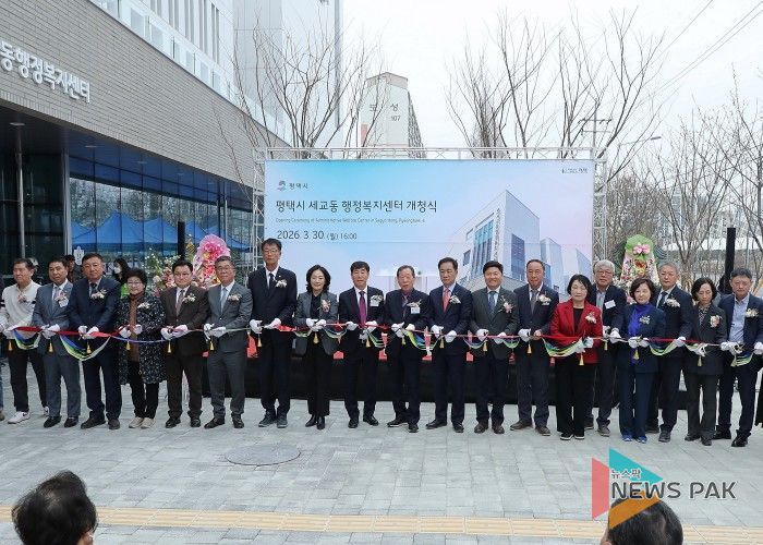 뉴스팍 이소율 기자 | 평택시 세교동은 지난 3월 30일 세교동 행정복지센터에서 지역주민과 주요 내빈이 참석한 가운데 개청식을 개최했다.