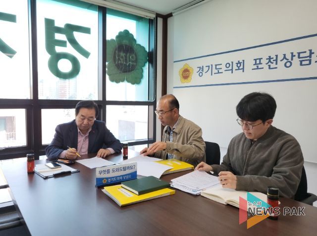 뉴스팍 배상미 기자 | 경기도의회 농정해양위원회 소속 김성남 의원(국민의힘, 포천2) 4월2일 경기도의회 포천상담소에서 경기도 축산동물복지국 관계자들과 아프리카돼지열병 발생에 따른 피해 농가 지원 방안을 논의하는 정담회를 가졌다.