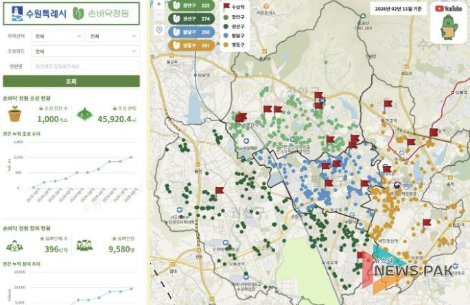 뉴스팍 배상미 기자 | 2023년 봄부터 수원시 곳곳에 아담한 정원이 하나둘씩 생기기 시작했다. 시간이 흐르면서 정원은 점점 늘어났고, 지금은 수원을 걷다 보면 5분에 한 번씩은 자투리땅에 만들어진 아름다운 정원을 만날 수 있다.