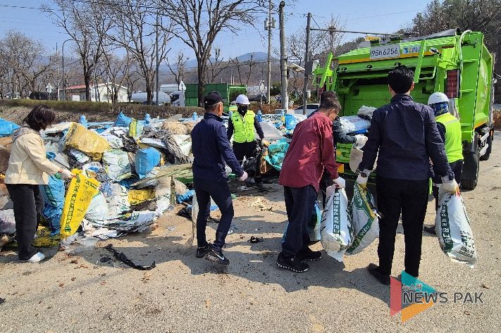 작업 첫날인 4월 1일에는 상·하광교동 주민을 비롯해 환경관리원 등 20여 명이 자발적으로 참여한 가운데 영농 폐비닐과 재활용품, 일반 쓰레기 등을 꼼꼼하게 분리했다. 이어 2일에는 전날 분리해 둔 폐기물을 수거 차량이 싣고 주변 잔여 쓰레기를 정돈하는 것으로 이틀간의 환경 정비 일정을 마무리했다.