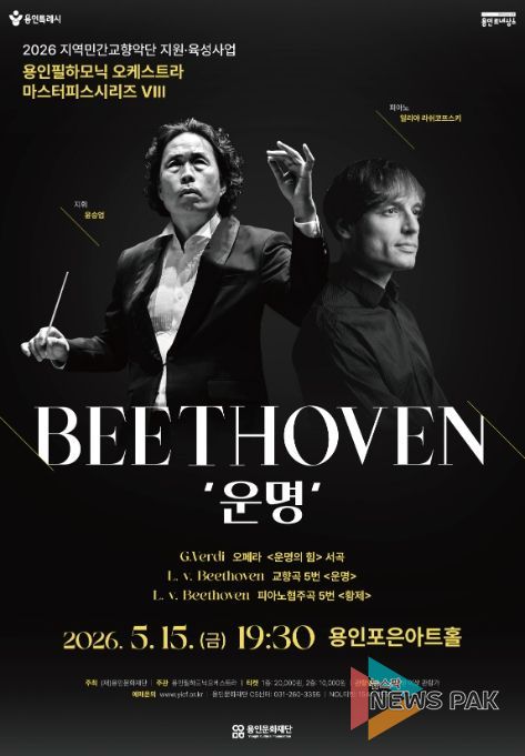 뉴스팍 배상미 기자 | 용인문화재단은 오는 5월 15일 오후 7시 30분 용인포은아트홀에서 ‘2026년 지역민간교향악단 지원·육성사업’의 첫 공연으로 용인필하모닉오케스트라의 기획공연 '마스터피스 시리즈 Ⅷ - 베토벤 ‘운명’'을 선보인다.