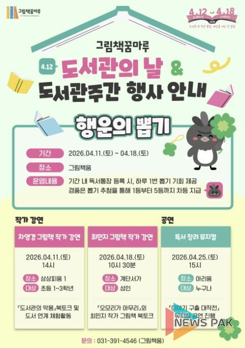 뉴스팍 배상미 기자 | 군포 그림책꿈마루는‘도서관의 날(4월 12일)’을 맞아 이용자 누구나 참여할 수 있는 다양한 문화 프로그램을 운영한다고 밝혔다.