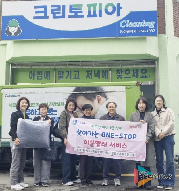 뉴스팍 배상미 기자 | 수원시 팔달구 우만1동은 지난 6일 관내 저소득 홀몸 어르신 가구를 대상으로 ‘찾아가는 ONE-STOP 이불 빨래 서비스’를 실시했다.