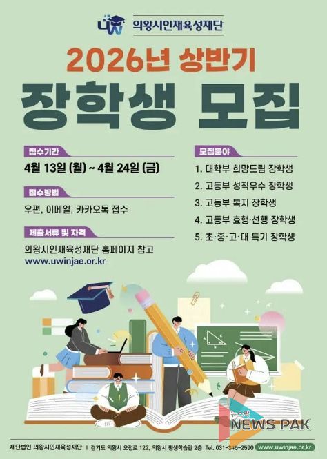 뉴스팍 배상미 기자 | 의왕시인재육성재단이 2026년 상반기 장학생을 모집한다.