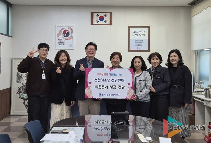 뉴스팍 배상미 기자 | 수원시청소년청년재단 천천청소년청년센터는 청소년과 청년들이 주도적으로 참여한 ‘청소년·청년 펀딩 프로젝트’의 수익금 전액을 정자3동 행정복지센터를 통해 사회복지공동모금회에 기탁했다고(4월 7일) 밝혔다.