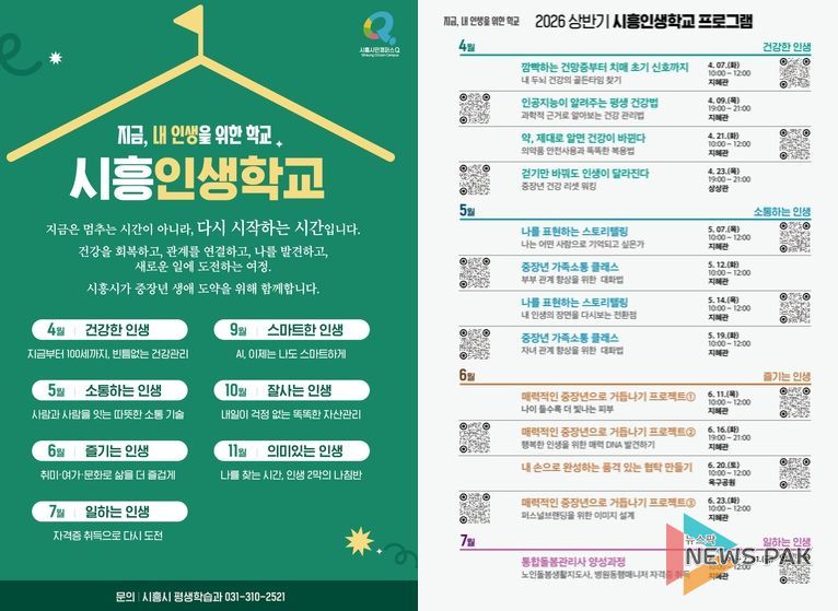 김상동 평생교육원장은 “시흥인생학교는 중장년의 삶 전반을 체계적으로 지원하는 통합형 인생 설계 플랫폼”이라며 “건강 회복에서 시작해 관계 확장, 새로운 도전과 성찰로 이어지는 여정을 통해 중장년 시민들이 스스로 삶의 방향을 설계할 수 있도록 적극 지원하겠다”라고 밝혔다.