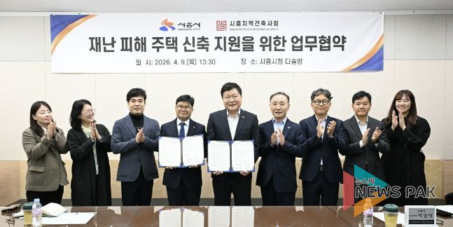 뉴스팍 배상미 기자 | 시흥시는 각종 사회재난 및 자연재난으로 피해를 본 주민의 신속한 주거 안정을 지원하기 위해 시흥지역 건축사회와 ‘재난 피해주택 신축 지원을 위한 업무협약’을 지난 4월 9일 다슬방에서 체결했다.