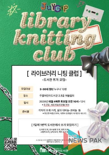 뉴스팍 배상미 기자 | 고양특례시 주엽어린이도서관은 20~30대 청년을 대상으로 하는 커뮤니티 프로그램 ‘라이브러리 니팅 클럽’을 오는 4월 25일부터 운영한다.