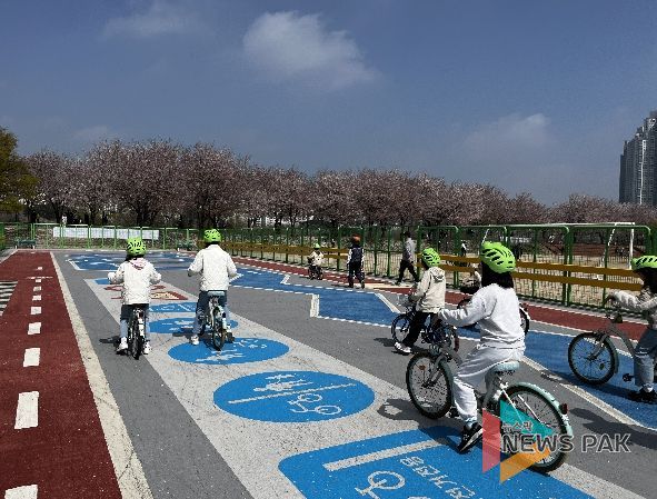 뉴스팍 배상미 기자 | 수원특례시는 11월 29일까지 만석공원 어린이 자전거교육장에서 초등학생과 시민을 대상으로 ‘자전거 안전교육’을 운영한다.