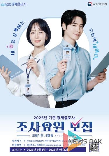 뉴스팍 배상미 기자 | 고양특례시 일산서구는 2025년 기준 경제총조사의 원활한 수행을 위해 4월 13일부터 15일까지 조사요원 52명을 모집한다.