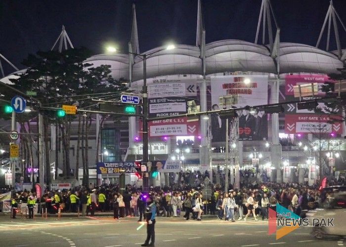 뉴스팍 배상미 기자 | BTS 월드투어 아리랑 in 고양 공연이 열렸던 9일, 11일~12일 13만여 명의 관람객이 방문한 가운데, 고양특례시는 단 한 건의 안전사고 없이 공연이 마무리됐다고 14일 밝혔다.