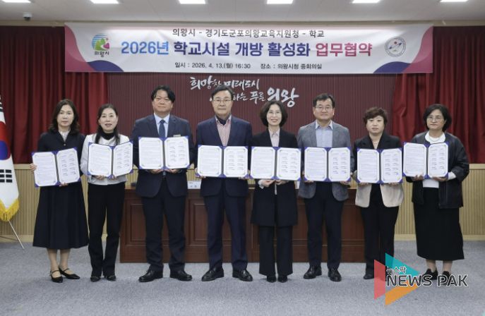 뉴스팍 배상미 기자 | 군포의왕교육지원청은 4월 13일 의왕시 및 관내 학교(8개교)와 학교시설 개방 활성화를 위한 업무협약(MOU)을 체결했다.