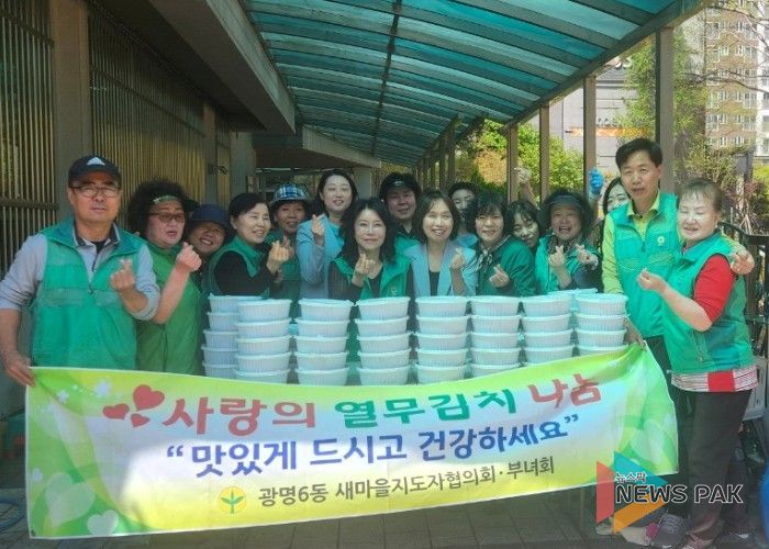 뉴스팍 배상미 기자 | 광명시 광명6동 새마을부녀회와 지도자협의회는 지난 15일 봄맞이 소외계층 지원을 위한 ‘2026년 사랑의 열무김치 나눔’ 행사를 열었다.