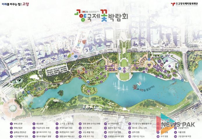 뉴스팍 배상미 기자 | 제18회 고양국제꽃박람회가 오는 24일부터 5월 10일까지 17일간 일산호수공원 일원에서 개최된다. 지난 1997년 처음으로 막을 올린 꽃박람회는 지난해까지 국내외 900여만 명 관광객이 방문한 명실상부 고양시 대표 축제다. 올해는 ‘꽃, 시간을 물들이다’를 주제로 화려한 야외전시, 실내 특별전시, 공연·이벤트, 플라워마켓 등으로 25만㎡ 규모를 가득 채운다.