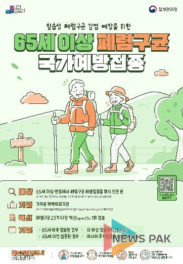 폐렴구균 예방접종은 65세 이상을 대상으로 평생 1회 무료 지원되고 있으며, 주소지와 관계없이 가까운 위탁의료기관에서 접종받을 수 있다.