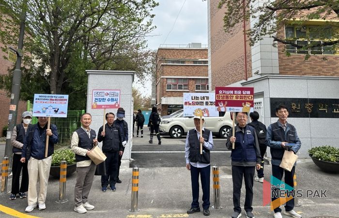 뉴스팍 배상미 기자 | 수원시 장안구보건소가 17일 근로복지공단수원어린이집, 송정초등·중학교, 송죽초등학교 등 통학로 일대에서 금연 캠페인을 펼쳤다.