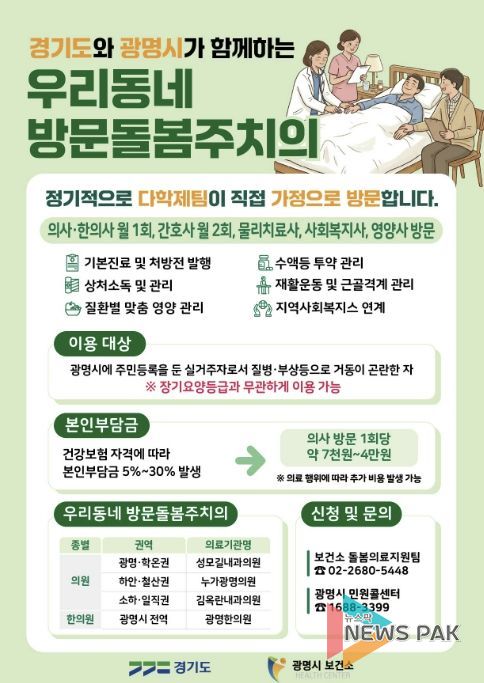 뉴스팍 배상미 기자 | 장기요양등급이 없는 광명시민도 집에서 방문돌봄주치의 진료를 받을 수 있게 된다.