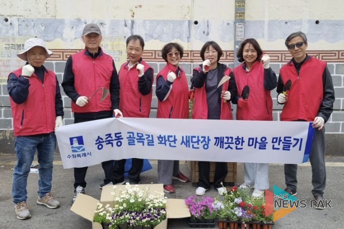 뉴스팍 배상미 기자 | 수원시 송죽동은 지난 17일 오후 2시, 주민자치회 위원들과 함께 관내 정비가 필요한 화단 일대를 대상으로 ‘골목길 화단 새단장’ 활동을 성공적으로 마쳤다.