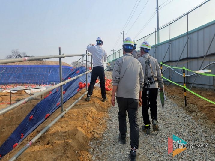뉴스팍 배상미 기자 | 안성시는 해빙기를 맞아 지반 약화로 인한 안전사고를 예방하고자 대규모 개발행위허가 사업장에 대한 안전점검을 실시한 결과, 전반적으로 관리 상태가 양호함을 확인했다고 밝혔다.