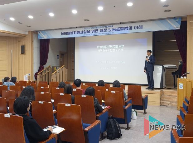뉴스팍 배상미 기자 | 경기도아이돌봄광역지원센터는 20일 경기도인재개발원 다산홀에서 도내 31개 시군 아이돌봄서비스 제공기관 종사자와 관련 공무원을 대상으로 ‘2026년 노동조합법 이해 교육’을 개최했다.