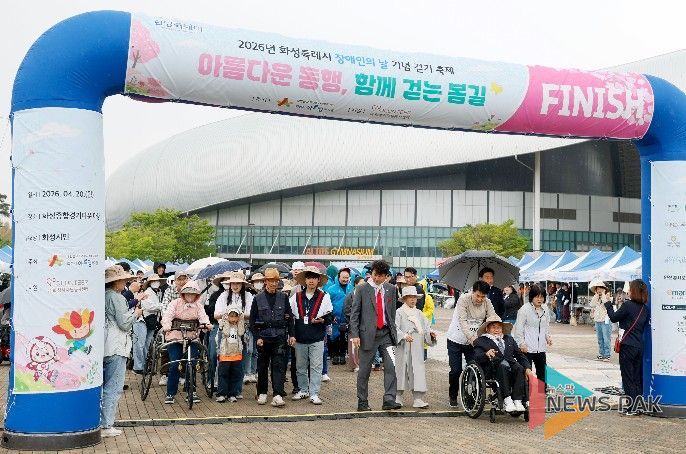 뉴스팍 류은정 기자 | 화성특례시의회는 20일 화성시종합경기타운 앞마당 일원에서 열린 '2026년 화성특례시 장애인의 날 기념 걷기축제 『아름다운 동행, 함께 걷는 봄길』'에 참석해 장애인과 비장애인이 함께하는 사회통합의 의미를 되새겼다.