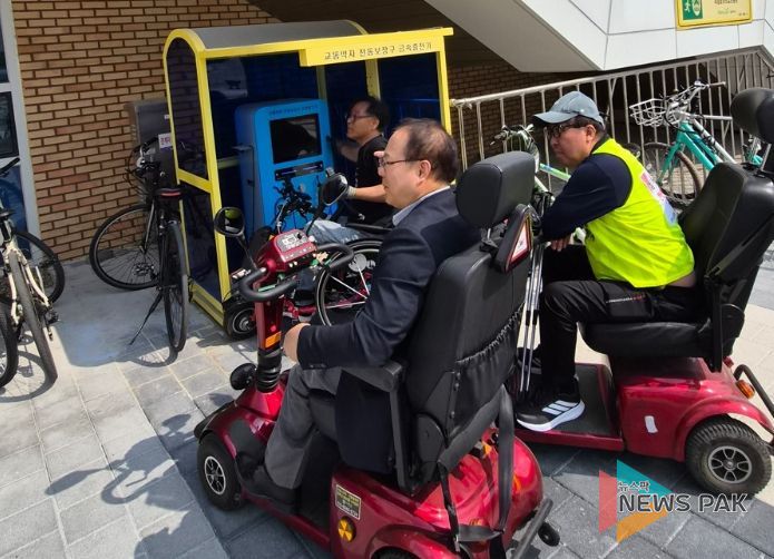 뉴스팍 배상미 기자 | 경기도의회 보건복지위원회 박재용 의원(더불어민주당, 비례)은 지난 17일 양주시 옥정호수공원에서 교통약자를 위한 전동스쿠터 급속충전기 운영 실태를 점검하고, 이용 편의 개선 필요성을 확인했다.