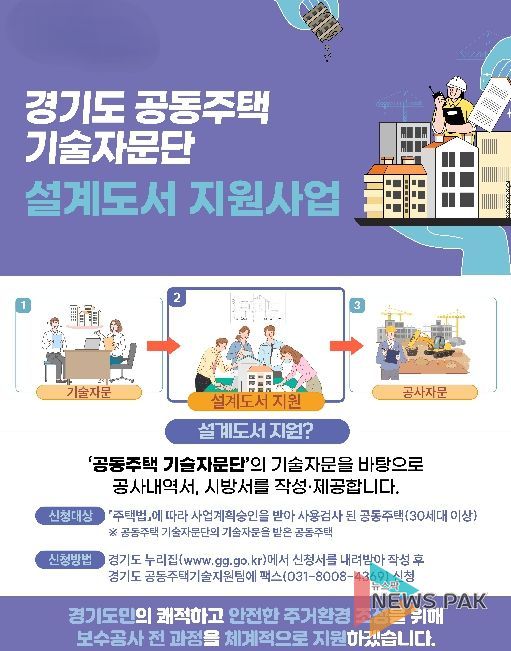 뉴스팍 배상미 기자 | 경기도는 아파트 공용부분 보수공사 시 전문 지식 부족으로 발생하는 관리비 낭비와 부실시공을 막기 위해 오산시 엘쿠르 아파트를 시작으로 ‘2026년 공동주택 기술자문단 설계도서 지원사업’을 본격 추진한다고 21일 밝혔다.