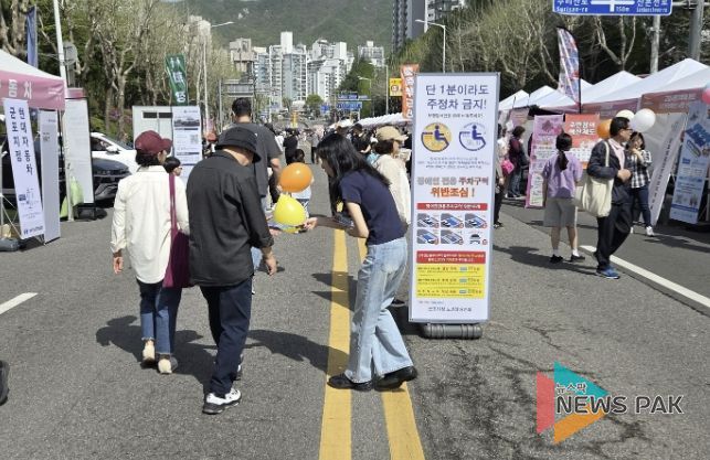 뉴스팍 배상미 기자 | 군포시는 『2026 군포철쭉축제』 차없는거리 기간(4.19.)에 축제를 찾은 시민에게 장애인전용주차구역 홍보 캠페인을 펼쳤다고 전했다.