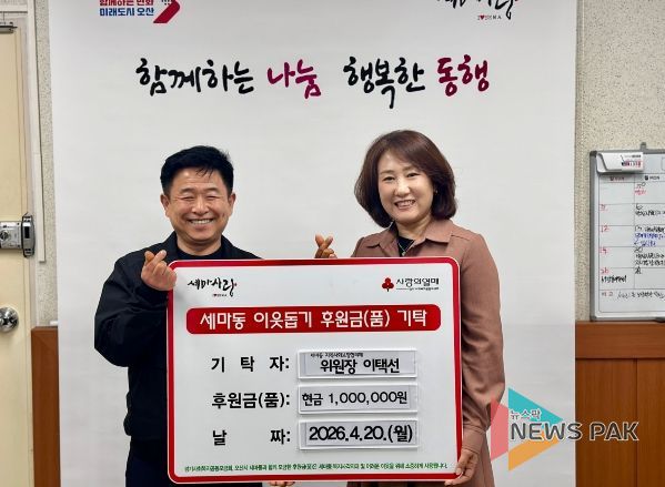 유미정 세마동장은 “매년 잊지 않고 따뜻한 나눔을 실천해주시는 이택선 위원장님께 깊이 감사드린다”며 “기탁해주신 성금은 도움이 필요한 이웃들에게 소중히 전달하겠다”고 말했다.