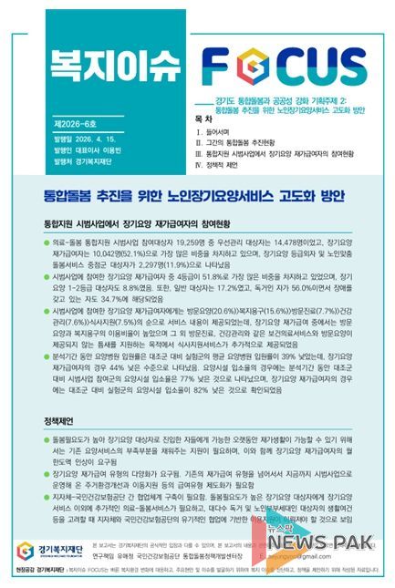 뉴스팍 배상미 기자 | 경기복지재단(대표이사 이용빈)은 통합돌봄 정착을 위한 노인장기요양서비스 고도화 방안을 주제로 '복지이슈포커스 제6호' 보고서를 발간했다.