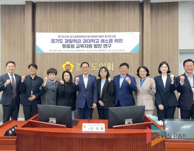 뉴스팍 배상미 기자 | 경기도의회 교육기획위원회의 연구단체인 경기교육정책연구회(회장 안광률 위원장)는 21일(화) 교육기획위원회 회의실에서 ‘경기도 과밀학급·과대학교 해소를 위한 맞춤형 교육지원 방안 연구’를 주제로 연구용역 보고회를 개최했다.