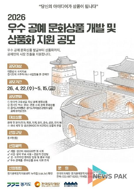 뉴스팍 배상미 기자 | 한국도자재단이 ‘2026 공예 문화상품 개발 및 상품화 지원 사업’을 본격 추진한다고 22일 밝혔다.