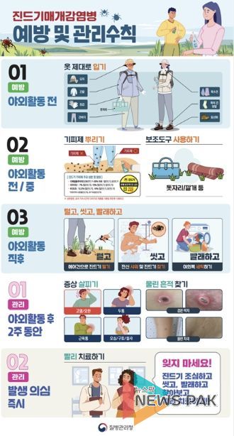 이형정 시흥시보건소장은 “봄철 농작업과 등산, 산책 등 야외활동이 늘어나는 시기인 만큼 진드기 예방수칙을 철저히 준수해야 한다”라며 “의심 증상이 있으면 신속히 의료기관을 방문해 조기 진단과 치료를 받는 것이 중요하다”라고 강조했다.