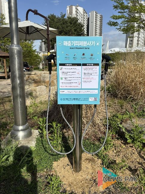 뉴스팍 배상미 기자 | 수원시 권선구보건소가 기온 상승과 야외 활동 증가 시기를 맞아 20일 관내 주요 공원과 산책로에 해충기피제 분사기를 확대 설치했다.
