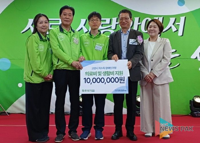 뉴스팍 배상미 기자 | 고양시장애인종합복지관은 지난 18일, ㈜태건비에프가 제37주년 창립기념일과 제46회 장애인의 날을 맞아 후원금 1,000만 원을 전달했다고 22일 밝혔다.